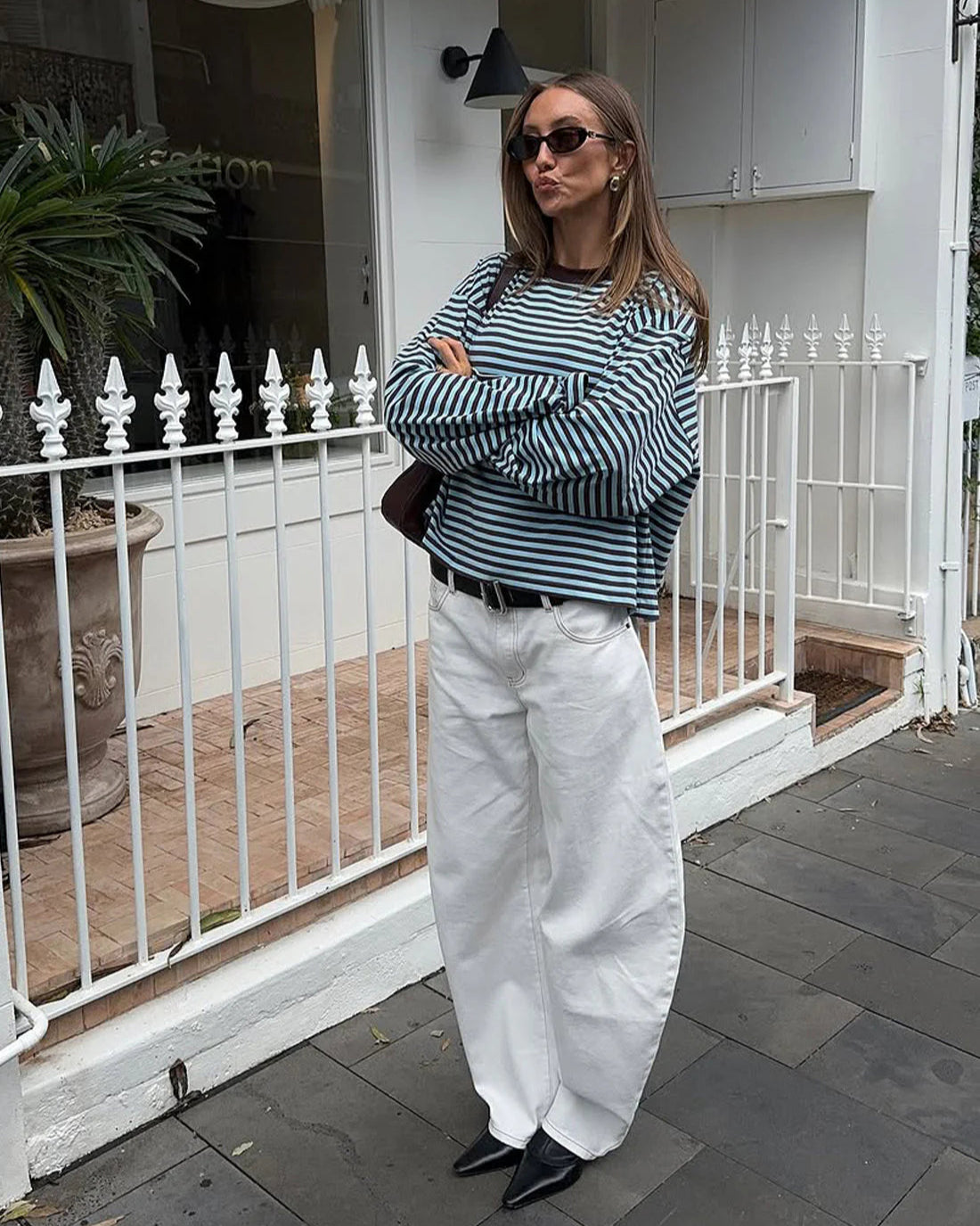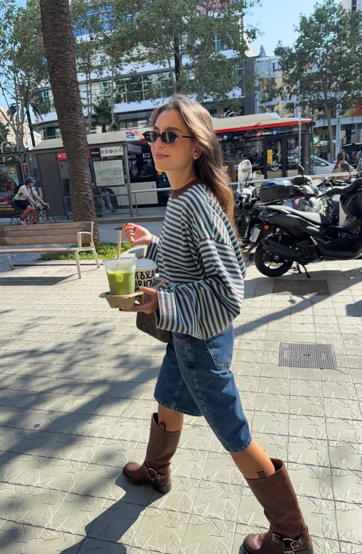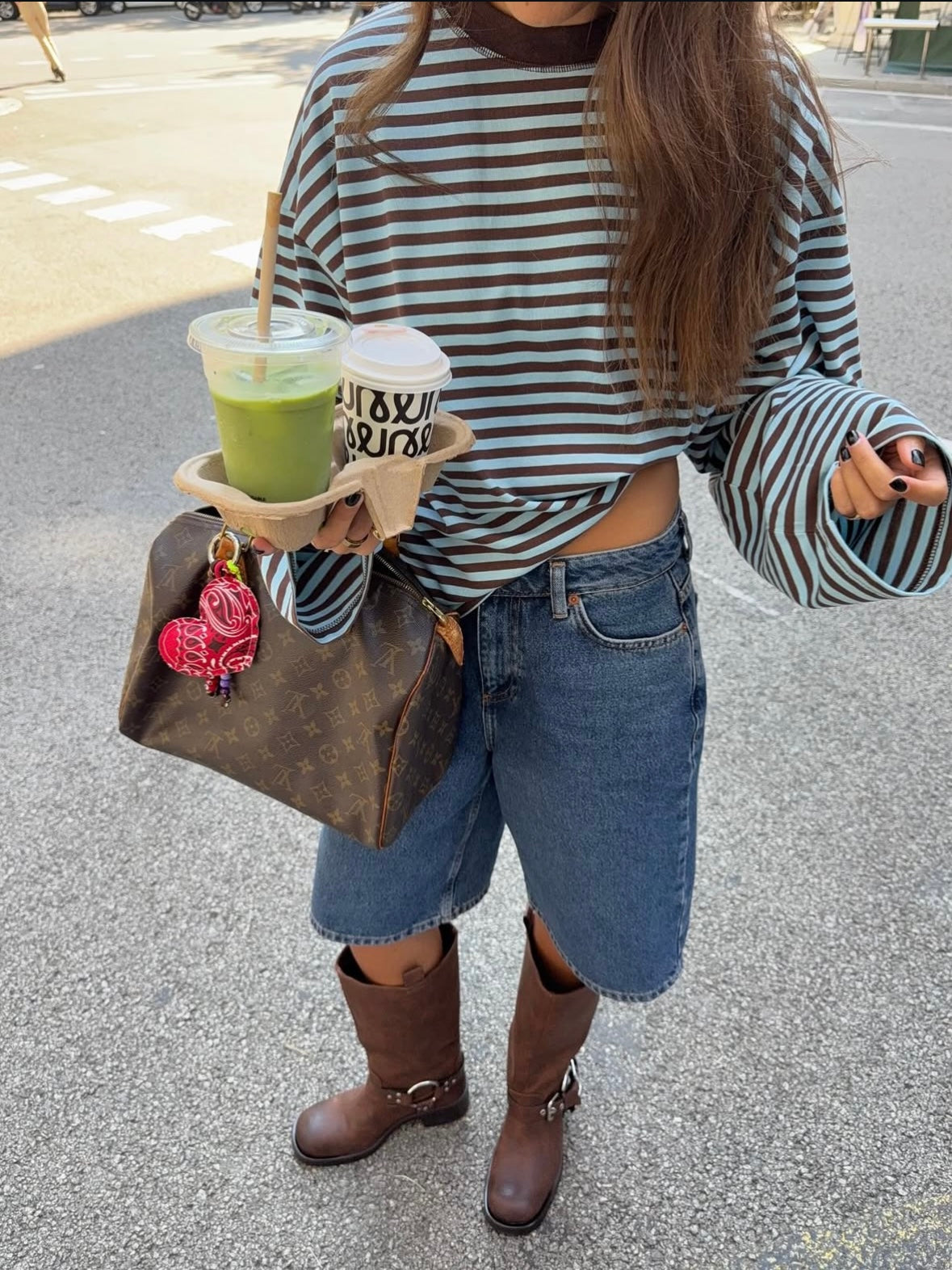 טי-שירט פסים בגווני חום שוקולד ותכלת, מבד איכותי ונעים למגע למראה יום-יומי נוח