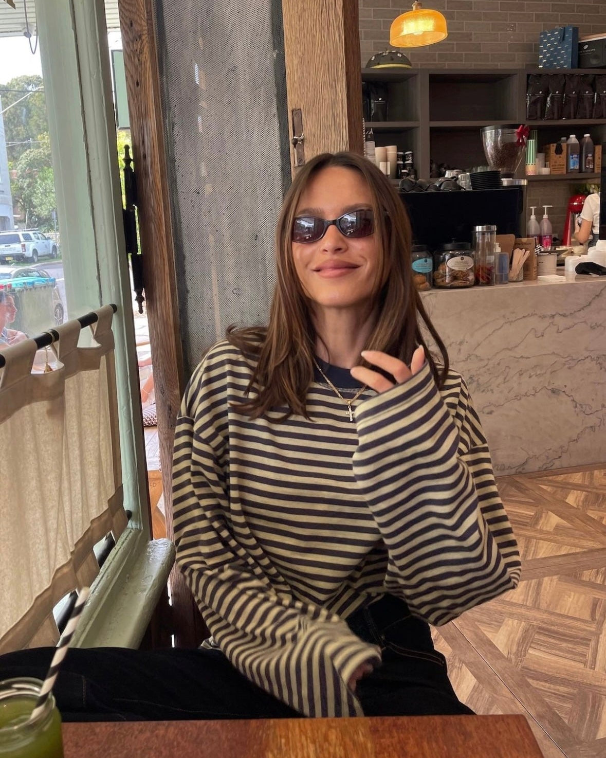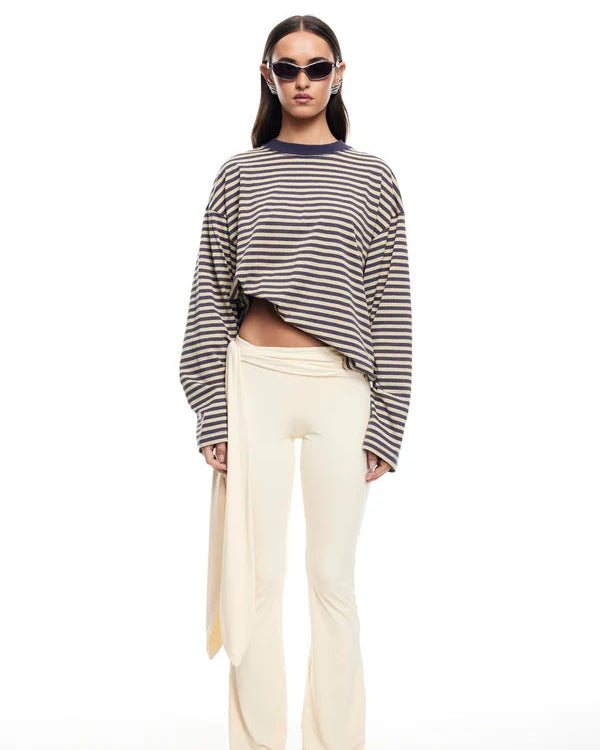 טי שירט פסים קלאסית בגווני סגול ובז' , מבד איכותי ונעים למגע למראה יום-יומי נוח