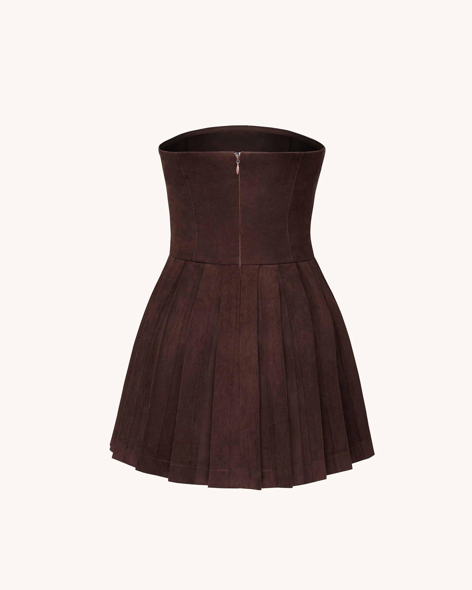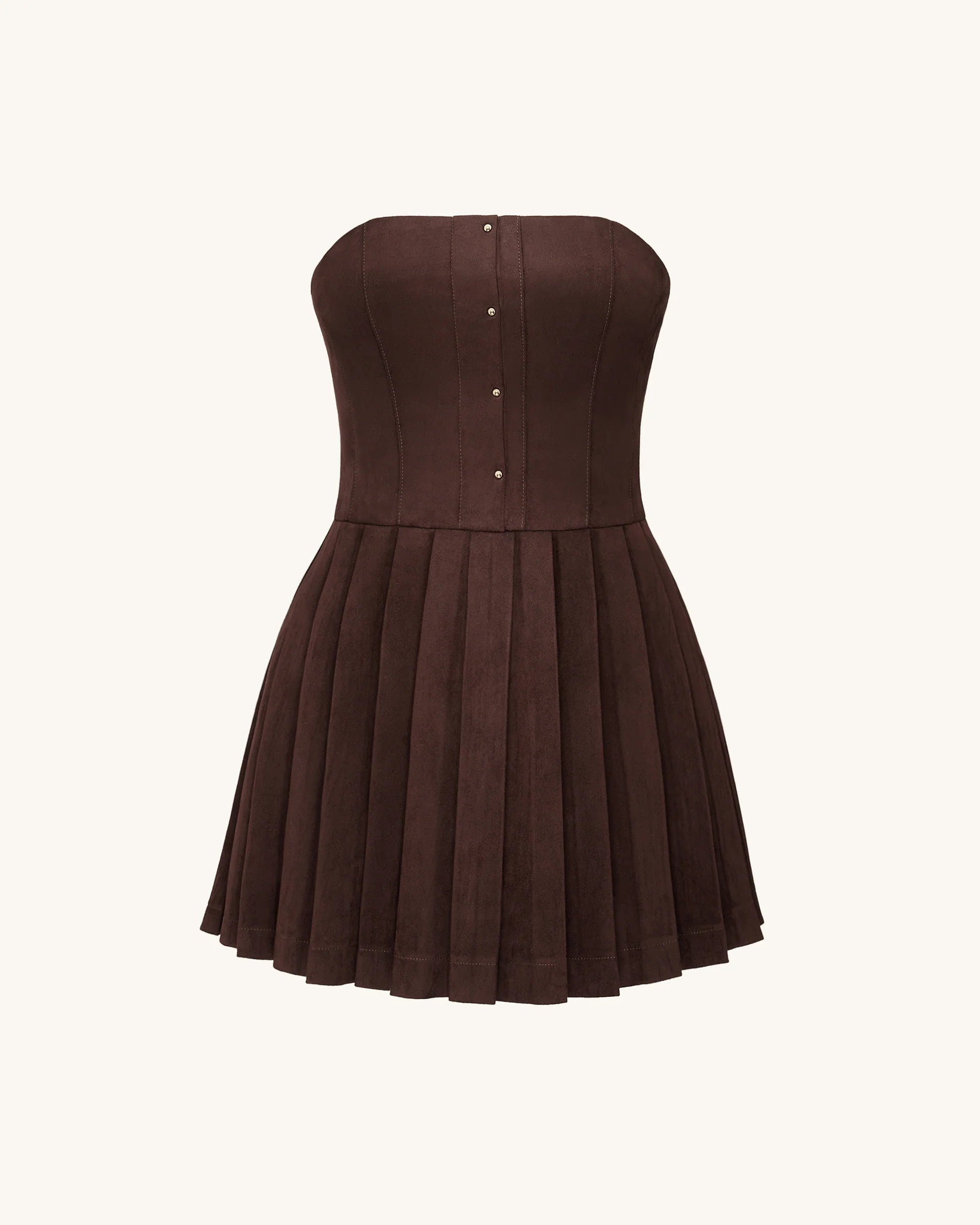 שמלת מיני קלאסית רכה ונעימה בגזרת סטרפלס מחזיקה ומחמיאה לגוף