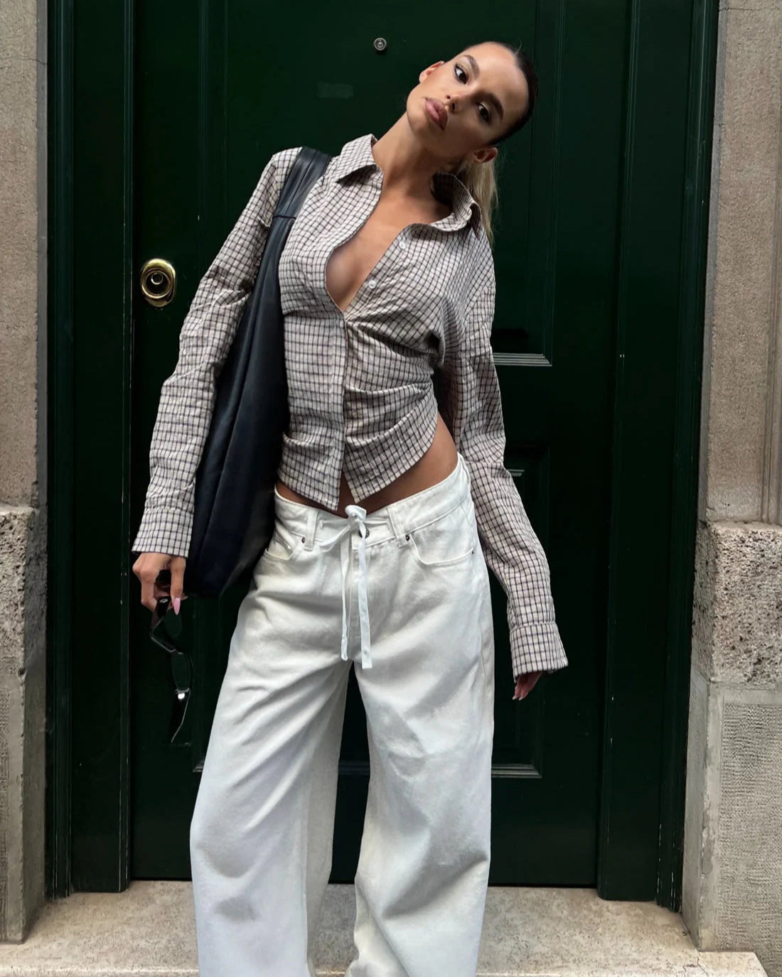 מכופתרת נירוונה בגוון משובץ, אובר-סייז לסנגון יום יומי, אך משמשת גם כאלגנטית במידה קטנה